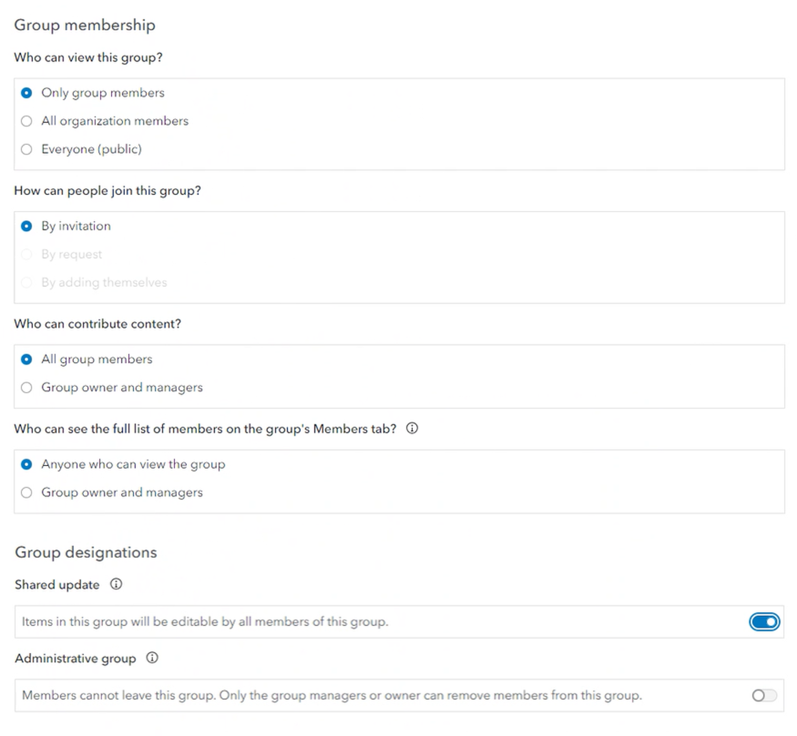 - Share the UNE portal item to this group as well, but do NOT select the Shared Update option. The group sharing dialog should look as follows: