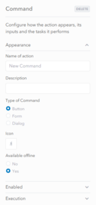 - In the Appearance tab, provide a name to be displayed in the panel and select Button as the type of Command. An icon can be selected which will appear inside the button alongside the configured name.