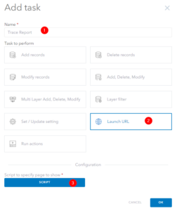 In order to generate a report that opens into a new modal (or window), the Launch URL task is configured to transform the features returned from a trace into valid HTML Content.